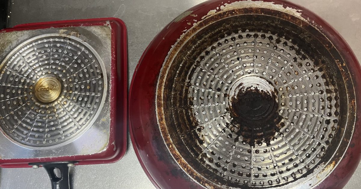 ▼使用後に普通に洗う程度なので、裏面はまぁ~焦げ付いていて汚い・・・。